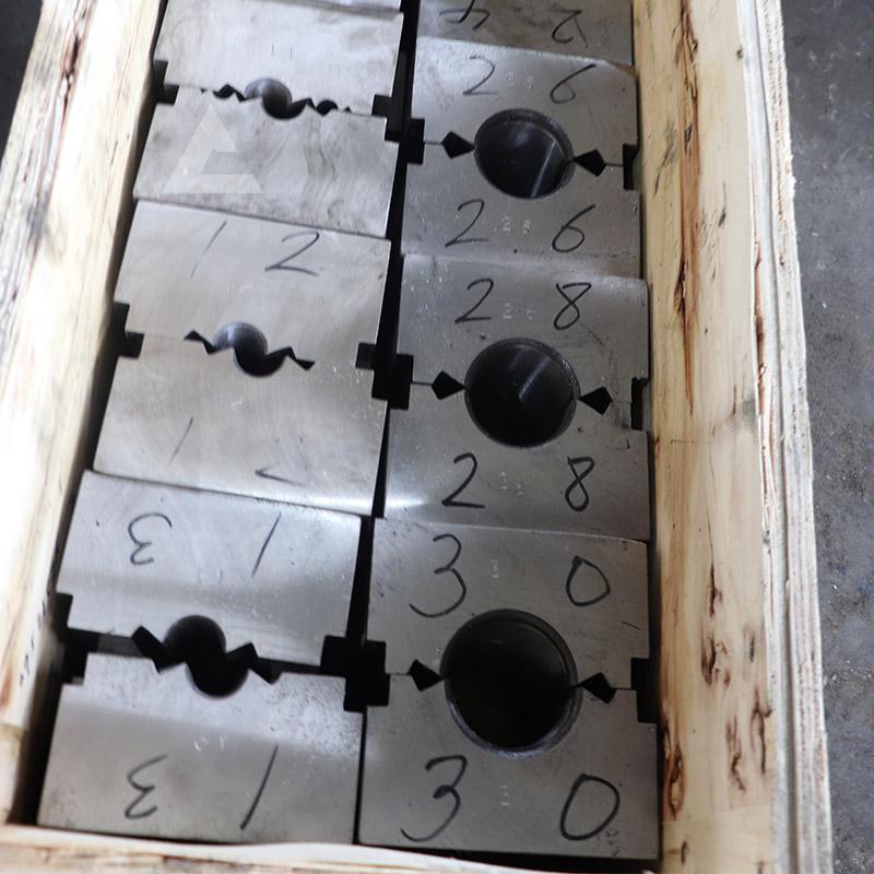 鋼絲繩壓套機(jī)是各大港口、五金市場經(jīng)常會采購的一種設(shè)備,用于在鋼絲繩的兩端來壓制鋁套或者是鋼套,加強(qiáng)鋼絲繩的承載能力。那么液壓壓套機(jī)在壓制鋼絲繩繩套的時(shí)候,需要使用模具來完成壓制的過程。下面就來了解一下鋼絲繩壓套機(jī)模具的參數(shù):